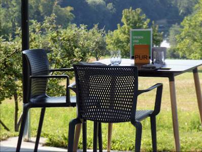 - Rollstuhlgerechter Eingang & Parkplatz: Die PUR . Konditorei legt großen Wert auf Barrierefreiheit. Es gibt einen rollstuhlgerechten Eingang und Parkplatz.